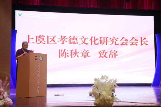 陈秋章为活动致辞。他表示孝德文化是中华传统文化的瑰宝,高度评价了我院在孝德文化传承与创新方面所做的努力与贡献,并表达了深化校地合作、共同推动孝德文化繁荣发展的美好愿景。