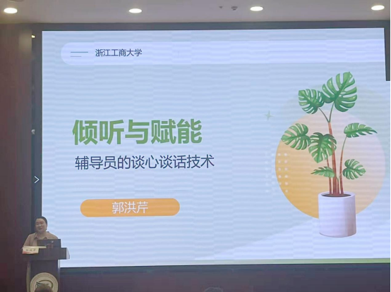 8日下午,浙江工商大学心理健康教育中心主任郭洪芹通过情景模拟,传授“共情-聚焦-赋能”谈心谈话技巧;首届辅导员谈心谈话能力大赛以“学业困境”“网络成瘾”等真实案例为命题,展现辅导员的情感智慧与专业素养。