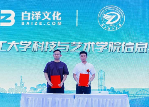 为深化产教融合、推动人才培养与产业需求精准对接,助力区域数字经济高质量发展,近日,信息与控制学院(以下简称“信控学院”)与e游小镇的白泽(绍兴)文化传媒有限公司(以下简称“白泽文化”),在e游小镇惠普广场联合举行产教融合共同体签约仪式,共同开启“技术共研、人才共育”的校企协同发展新篇章。