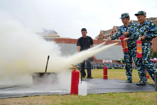 为切实做好2025级新生安全始业教育工作,强化新生安全意识与应急避险能力,将安全理念融入军训育人全过程,9月22日下午,学院组织所有参训新生在操场开展消防培训演练活动。