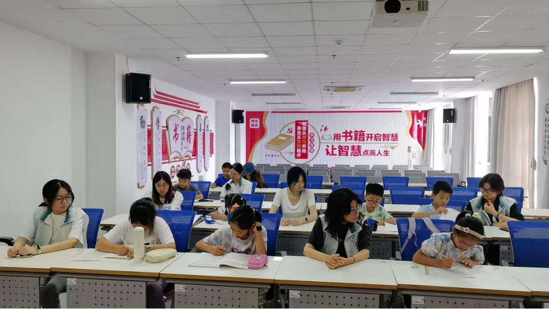 亲子学堂课程设置匠心独运,采用“分龄定制”模式。针对低龄儿童的“蒙正班”,活动聚焦趣味启蒙与动手实践,非遗花草纸灯笼制作与石膏娃娃涂色等环节,不仅锻炼了孩子们的创造力,更让传统工艺的种子悄然植根心田;辅以国学经典熏陶,通过上虞非遗文化及国学小故事分享,润物无声。针对高年级学子专设的“勤学班”,则提供了静谧高效的学业辅导空间,助力他们在新学期扬帆起航。