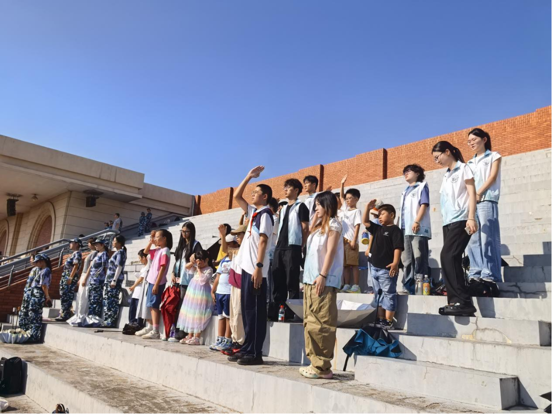 9月28日上午,恰逢学院大一军训总结汇演,20余名教职工子女共同观摩了气势恢宏的军训汇报演出。大学生们挺拔的身姿与铿锵的步伐展现了纪律严明的军人风范,为小学员们上了一堂生动的“开班第一课”。在图书馆,孩子们观看了“北上抗日”特展,重温了抗日历史,随后观看经典儿童革命影片《鸡毛信》,于观影中重温红色记忆,于光影交错间接受爱国主义精神的无声浸润。