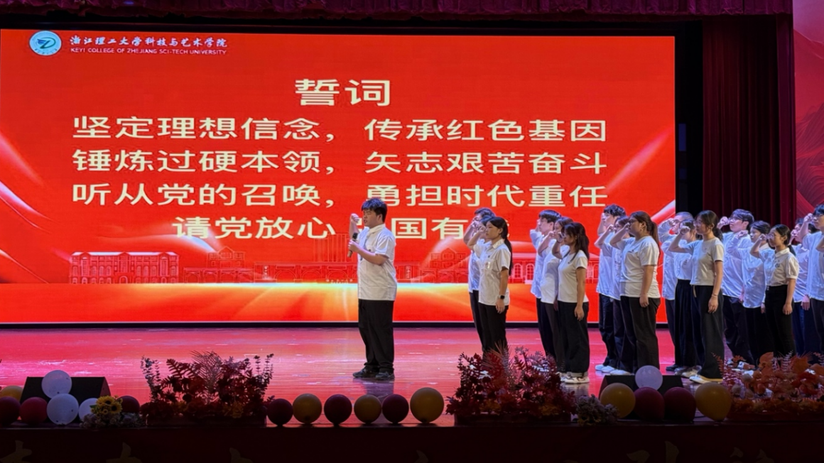 活动特别设置了“集体宣誓”环节。在庄重的氛围中,递交入党申请书的新生团员代表登台宣誓,表达了积极向党组织靠拢、立志成才的坚定决心。这一环节成为整场活动最具仪式感的亮点,生动体现了学院党建引领育人工作的成效。