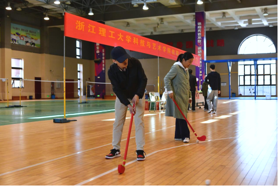 活动现场,在“掷飞镖”区域,参赛者屏息凝神,精准投掷,每一次命中靶心都引发阵阵喝彩;“捶丸”项目则让师生们穿越时空,体验古代运动的雅趣,大家手持木槌,巧妙击球,感受传统与现代的碰撞。而“公鸡下蛋”环节更是将现场气氛推向高潮,参赛者身着特制道具,通过身体摆动让“鸡蛋”掉落,滑稽的动作和激烈的竞争引得观众捧腹大笑。此外,“两人夹球”项目考验了搭档间的默契与配合,参赛者们携手并进,共同冲刺终点,展现了团结协作的力量。