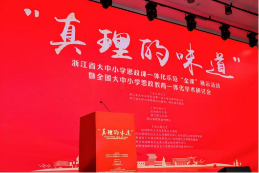 10月25日,由浙江省大中小学思政课一体化建设指导委员会、浙江省大中小学思想政治教育一体化建设联盟主办的浙江省“真理的味道”大中小学思想政治教育一体化“金课”展示活动暨全国大中小学思政教育一体化学术研讨会在杭州师范大学马克思主义学院召开。来自全国各地的300余位专家学者、联盟单位代表齐聚一堂,共谋思政教育创新发展大计。