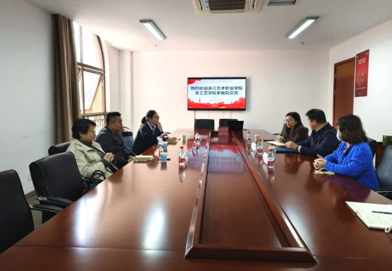 11月13日上午,浙江艺术职业学院手工艺学院院长助理包君伟、民族传统技艺教研室主任胡锦霞、专任教师黄茜一行来我院调研交流。教务部部长陶炳增、纺织服装学院党总支书记王朋、产品设计(纺织品艺术设计)专业负责人罗中艳热情接待。