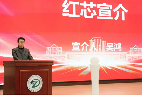 宣介环节,信控学院党总支书记吴鸿明确了行动的核心方向与组织架构。他指出,“红芯行动”以“党建红”引领“科研路”为核心思路,聚焦人工智能、元宇宙等前沿科研领域,系统性构建“两室一中心”(人工智能创新工作室、元宇宙创新工作室、科研竞赛孵化中心)组织体系,通过“党建引领科研赋能、平台聚合攻坚力量、先锋担当服务社会”的实践路径,推动党建与科研工作深度融合,助力学院科研能力提升与社会服务提质。