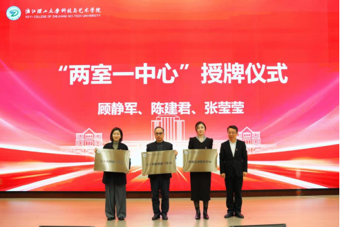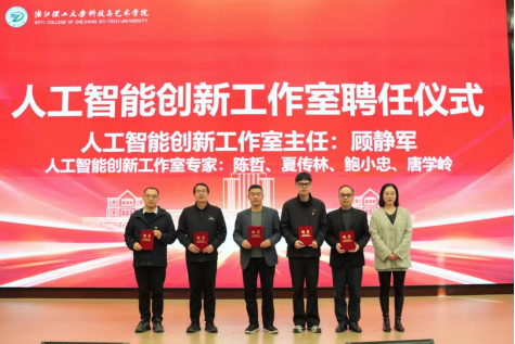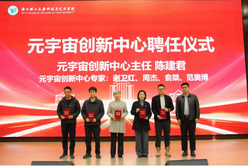 “两室一中心”的聘任与授牌仪式上,人工智能创新工作室主任顾静军及专家团队、元宇宙创新工作室主任陈建君及专家团队、科研竞赛孵化中心主任张莹莹依次上台接受聘书;丁福军为三大平台授牌,并勉励各团队牢记使命,以高标准建设创新载体,力争打造具有影响力的科研与实践品牌。