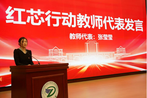 为进一步彰显党员的先锋模范作用,活动特别安排了“红芯先锋”授徽仪式。教师党员代表与学生党员代表依次上台佩戴象征党员在科研攻坚和创新实践中勇于担当的“红芯先锋”徽章。授徽结束后,红芯行动教师代表张莹莹和学生代表卓雨露先后发言,分别从教师履职与学生成长的角度,分享了对“红芯行动”的期待,表达了立足岗位深耕科研、投身实践勇担使命的决心与信心。