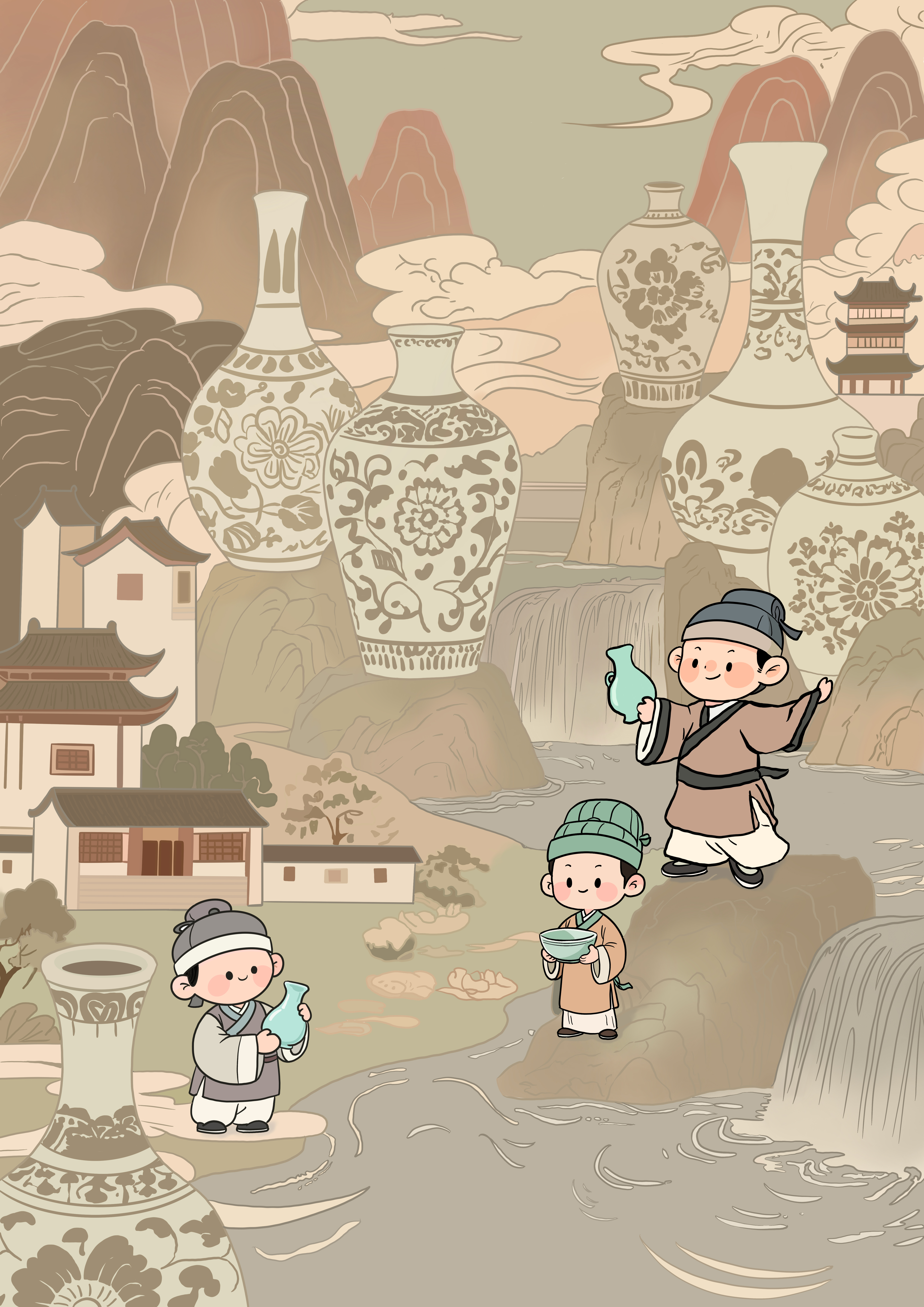 作品介绍:本系列作品以“千年窑火铸青瓷,拟人生生续文脉”为创作内核,在“青瓷为魂,拟人为形”的基础上,深度镌刻窑火的历史印记,让拟人形象成为承载千年制瓷技艺与精神的文化载体。通过这一形象,让“千年窑火”不再是遥远的历史符号,而是化作有温度、有姿态的文化使者,让大众在感知青瓷之美的同时,读懂窑火背后代代相传的匠心与坚守。