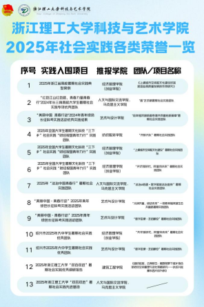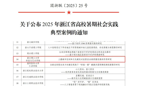 近日,共青团浙江省委、中共浙江省委宣传部、浙江省教育厅、浙江省学生联合会联合公布了2025年浙江省高校暑期社会实践典型案例评选结果。我院有1项优秀实践案例成功入选,获评“民生福祉”类别典型案例。