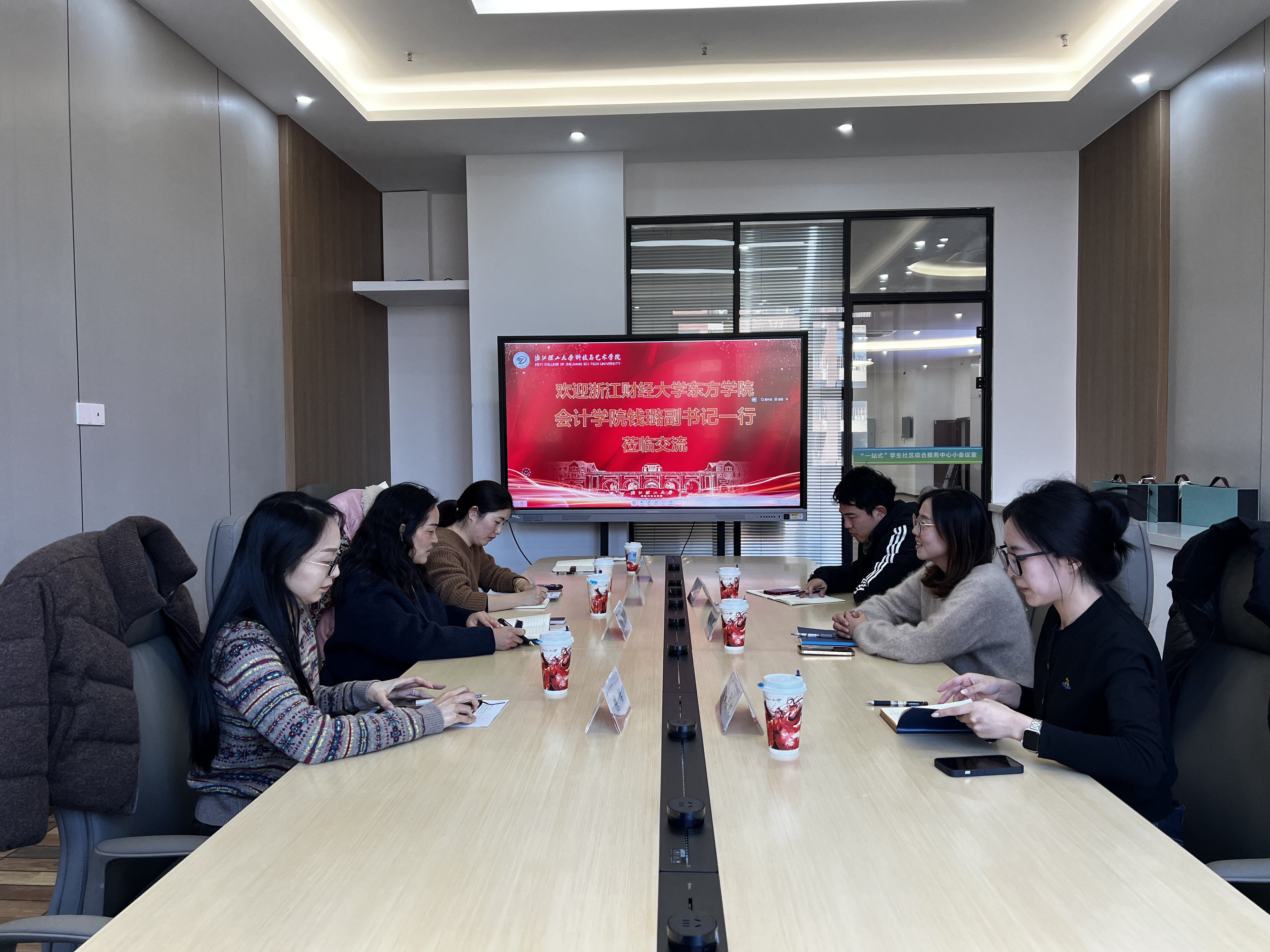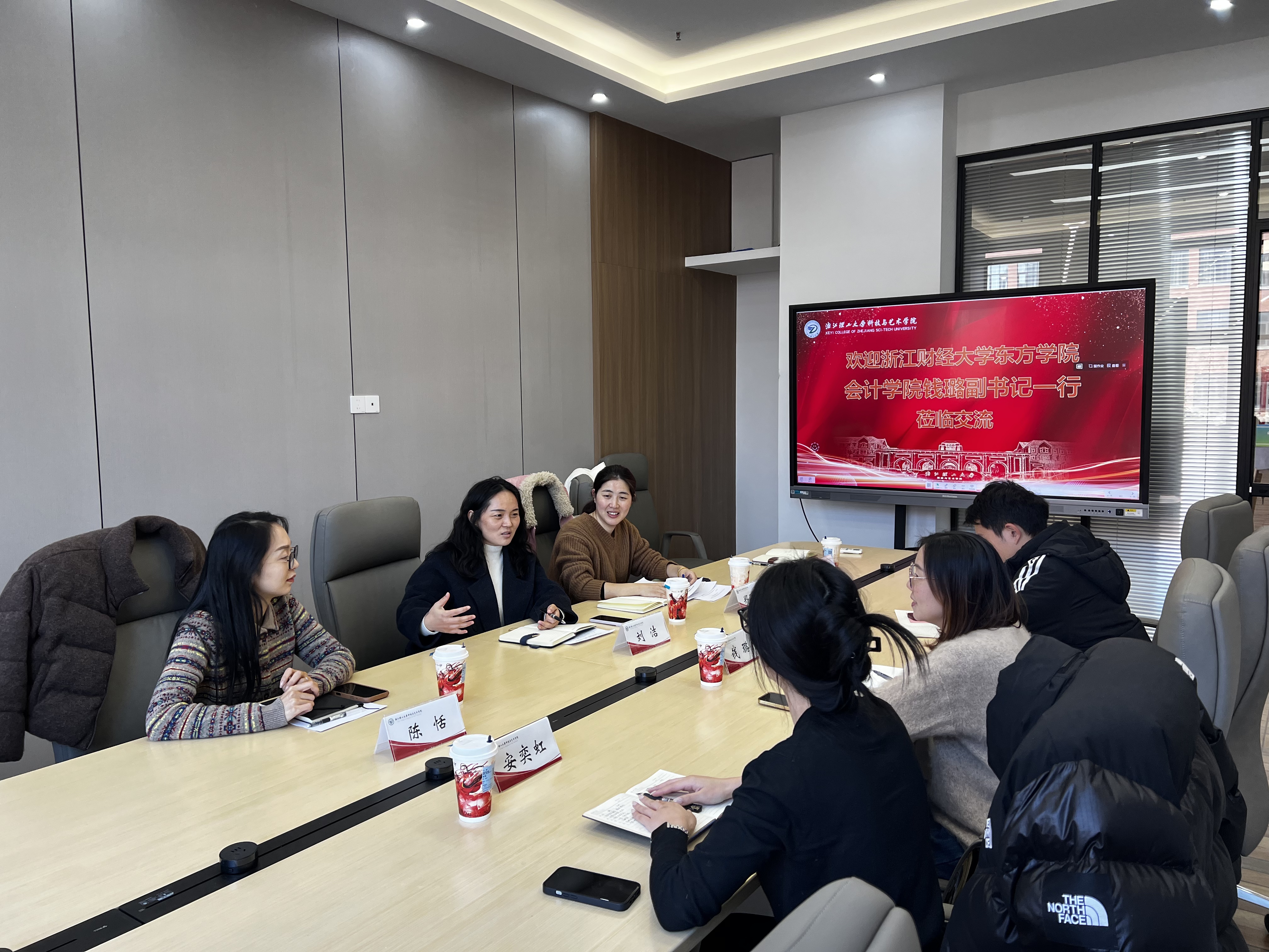 1月8日,浙江财经大学东方学院会计学院党总支副书记钱璐一行来我院调研,经济管理学院(创业学院)党总支副书记刘洁、学工办主任兼团委书记郑丽娜、部分辅导员参加调研。