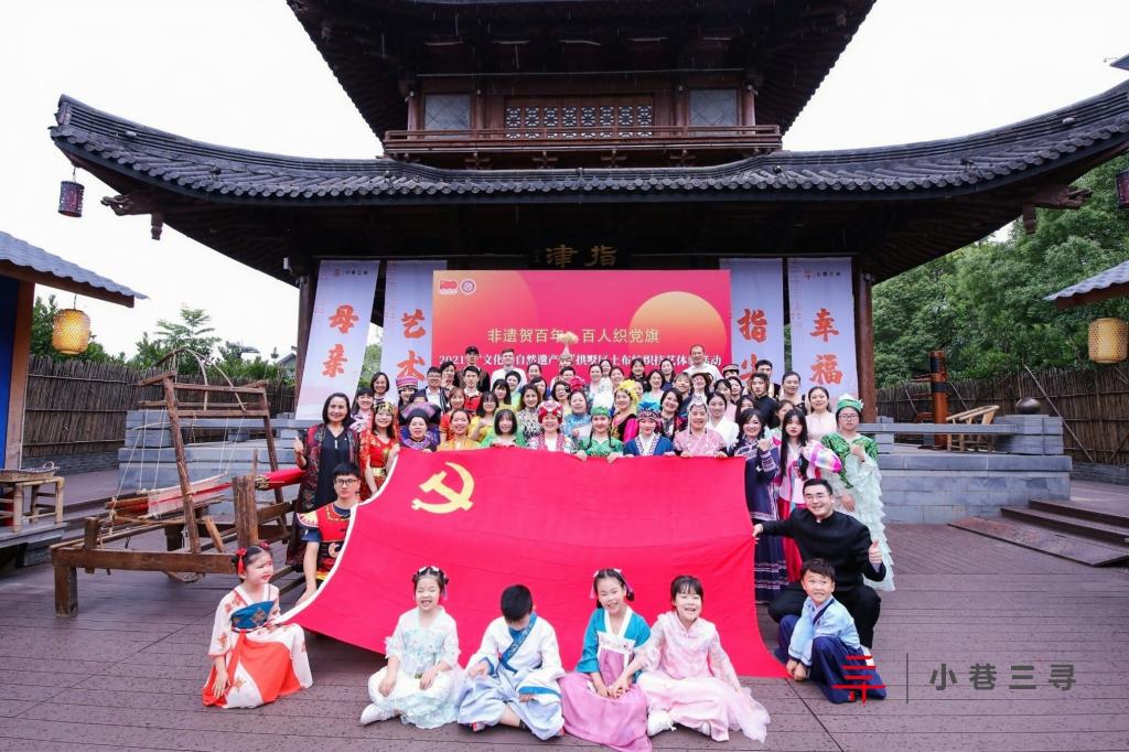 6月12日是“文化和自然遗产日”,科艺学院纺织服装学院服装与服饰设计专业学生在龚剑超老师的带领下参加拱墅区“非遗贺百年·百人织党旗”主题土布纺织技艺体验活动。