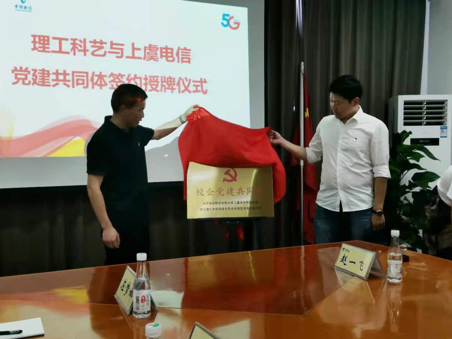 为推进党组织建设工作,实现党组织优势互补,增强基层党组织凝聚力、创造力和战斗力,发挥党建引领作用,6月22日下午,在中国电信上虞分公司会议室,浙江理工大学科技与艺术学院信息与控制学院党总支与中国电信股份有限公司上虞分公司政企部党支部党建翼联签约,并举行党建共同体揭牌仪式。