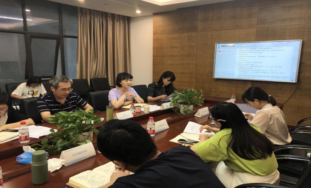 9月23日下午,浙科艺学院2021-2022第一学期第一次教学工作例会在行政楼216会议室举行。会议由副院长王莹主持,教务部(教育教学发展中心)负责人、各二级学院院长和相关教学秘书参加了会议。