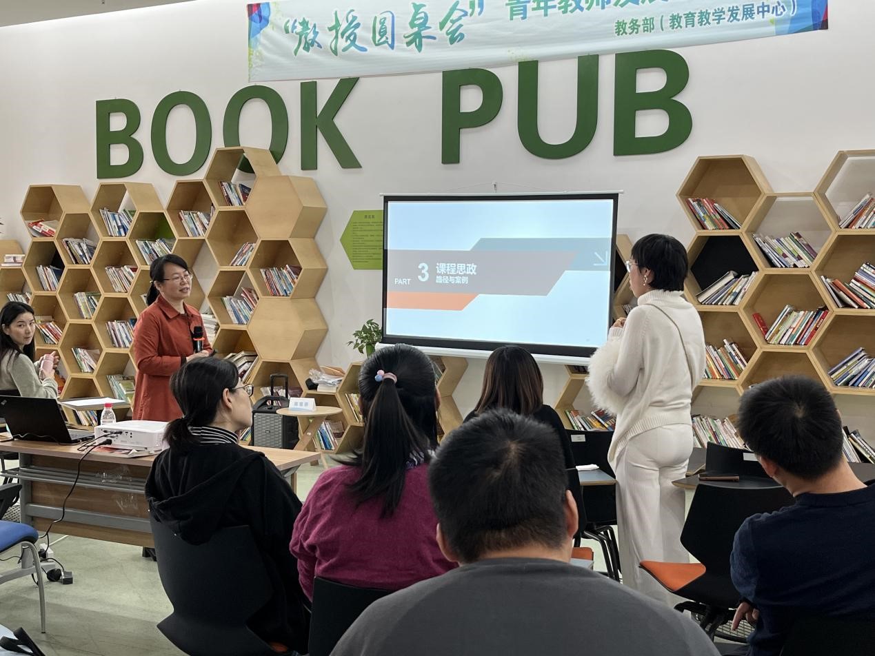 10月22日上午,教务部在图书馆休闲书吧迎来了本学期“教授圆桌会”青年教师发展培训计划的第一场培训讲座——《一流课程与课程思政建设的探索与思考》,本次讲座邀请到了浙江理工大学理学院高雪芬教授作为主讲人,全院近30名来自各二级学院(部)的教师参加了讲座。