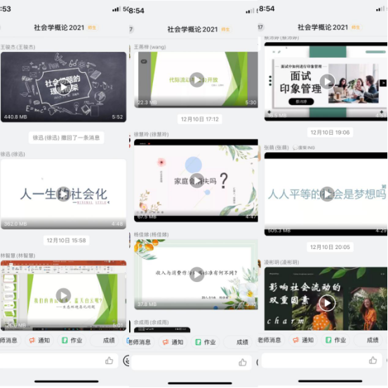 经济管理学院杨彐伟老师——社会学概论,学生以录屏的形式线上提交个人主题分享作业