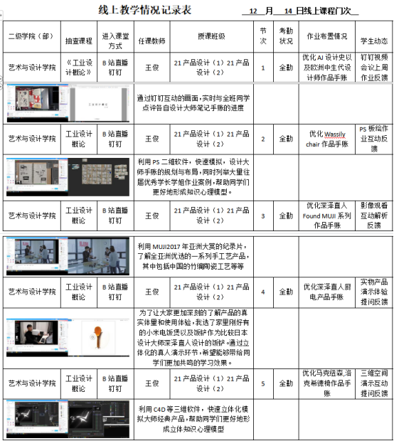 艺术与设计学院王俊老师——工业设计概率课程线上教学情况记录表