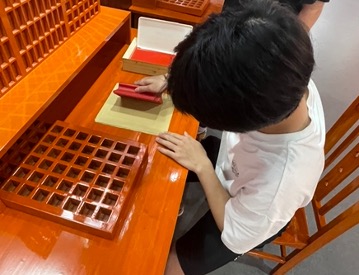 实践团成员在体验《共产党宣言》首个中文全译本封面印刷