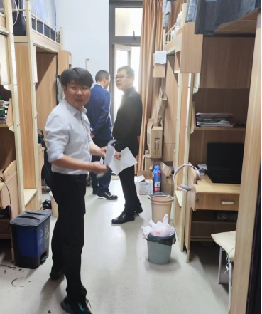 此次检查分为12组,成员由学工部、团委、综保部共计50名教职工和辅导员组成,主要从地面卫生、床铺整洁、家具用品整洁、门窗阳台整洁、卫生间整洁以及寝室文明行为等六方面进行综合打分,并重点排查了学生寝室内是否存在违规电器、私拉乱接电线、吸烟等安全隐患。在检查寝室卫生时,老师们向学生宣讲了寝室安全常识,提醒学生要注意寝室卫生,合理安排作息时间等。
