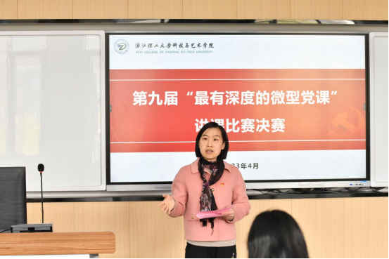 为深入学习贯彻党的二十大精神和省第十五次党代会精神,进一步强化全体师生的思想政治引领,4月7日下午学院举办第九届“最有深度的微型党课”讲课大赛决赛。浙江理工大学组织部副部长韩晶晶、上虞区委宣传部部务委员、社科联副主席王赛君、学院党建工作部部长罗超群等担任此次大赛评委。