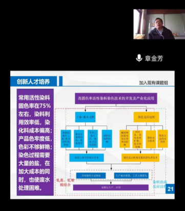 浙江灏宇科技有限公司副总经理章金芳作了“科研与社会实践的融合及学生能力培养的思考”专题报告,结合印染行业背景,介绍了印染在纺织产业链中的地位、印染行业的困境、印染行业和企业的特征、印染行业的创新之路、印染创新人才的实现路径五个方面的内容。他围绕现代制造型企业需要怎样的人才、大学生如何进行科研能力和实践能力培养两方面进行了详细地解说,并寄语当代大学生们要不断学习、实践和创新,从书本学到理论知识,在实践中激活理论知识,以激活的理论知识帮助企业进行创新,在创新中让理论和实践知识深度融合,实现升华。
