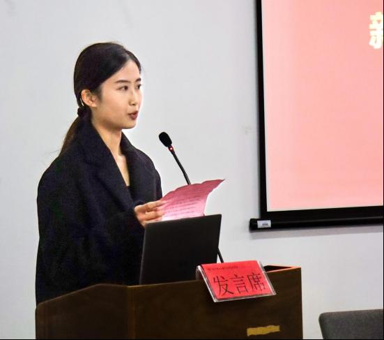 新入职辅导员代表人文与国际交流学院曹雨佳老师在开幕式上发言。她坚定表达会进一步提高对学生工作的认识,以科学的态度对待工作,积极研讨工作艺术,在学习中不断创新,在创新中锐意进取,开拓学生工作的新局面。