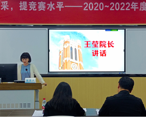 王莹讲话。她肯定了三年来学院学科竞赛的革新举措以及取得的成绩,强调了学科竞赛在高素质应用型人才培养中的地位,并提出了三点希望和要求:各二级学院要根据学科专业发展特点,做出自己的品牌竞赛;各专业要重视赛教融合体系的构建,有机融合课内外教学、拓展育人广度;各学科竞赛要借助学科竞赛这个平台,形成学生梯队、项目梯队,孵化、促进成果转型。