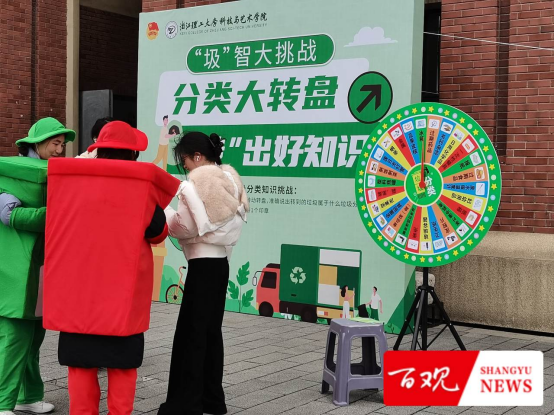 活动现场还设置了一系列创意十足的互动游戏——“分类大转盘”“沙包投进新时尚”“瓶启新程”以及“循环梦工厂”打卡活动,将学习垃圾分类的过程变得生动有趣。参与者们在享受游戏乐趣的同时,还能赢取学习用品、精美绿植等奖品,实现了寓教于乐的目的。科艺学院的学生翁梦欢在现场兴奋地表示:“这些游戏很有趣,它们不仅让我们在玩乐中学习了垃圾分类的知识,更重要的是,通过我们的参与和体验,能够激发更多同学对垃圾分类的兴趣,带动大家一起加入到这股环保新时尚的行列中来,为推动全社会环保意识的普及贡献自己的一份力量。”