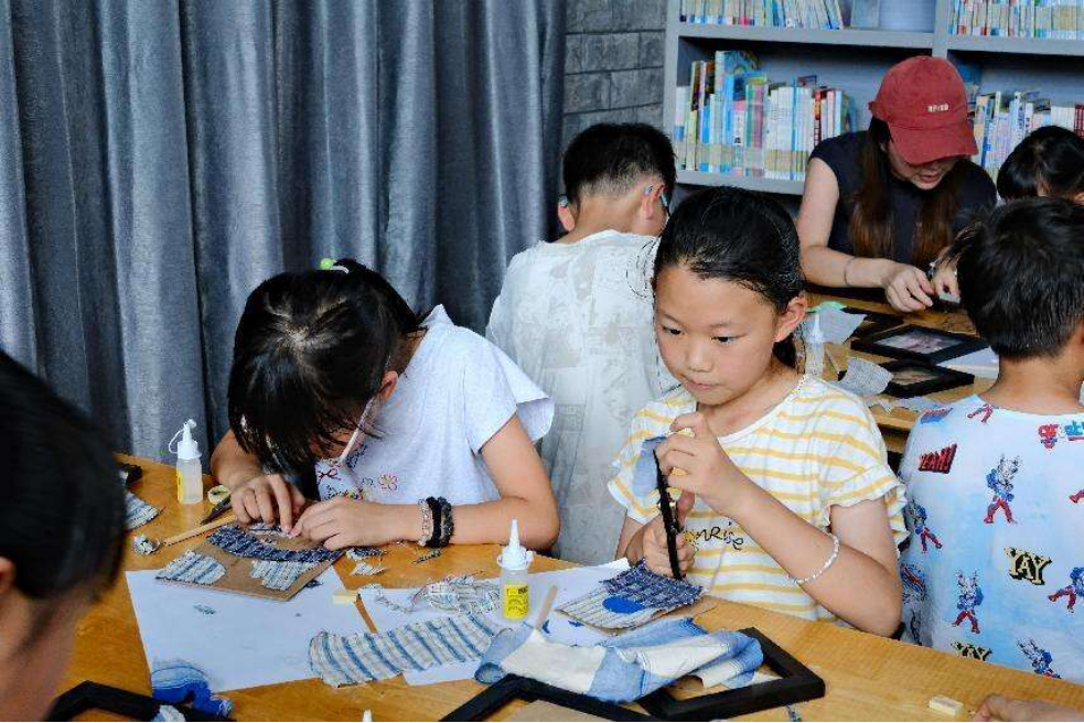 实践团队成员为在文化馆的小朋友们介绍浙东运河与越布,深入剖析了浙东运河在经济与文化领域对越布等非遗文化的传承与发展所起到的有力推动作用,并展示团队成员利用土布制作的一些家纺服饰产品,引导小朋友们通过使用越布文创作品了解越布非遗文化。