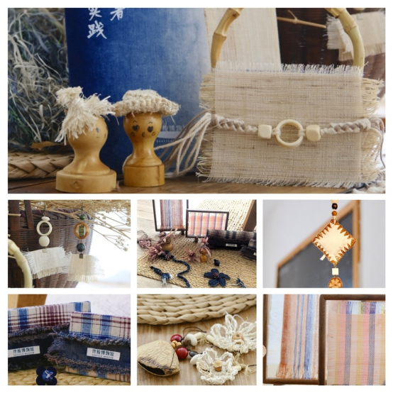 团队聚焦“可持续时尚”,开启跨界实践,他们利用葛材料开发出兼具实用性与艺术性的服饰品,将土布纺织技艺与回收牛仔材料结合,设计制作出独具风格的拼接包袋,更巧妙利用玉米皮等天然材料,创作出生动有趣的首饰系列,让农业废料焕发时尚光彩。这些作品既保留了传统手工艺的精髓,又融入了时尚元素与环保理念,展现了非遗活化的多元路径。