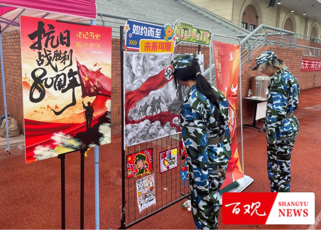此次作品展览类型丰富,涵盖海报设计、历史展板、纸质模型等。学院教师和退役士兵学生作现场讲解,为同学们上了堂生动的“红色思政课”。展区内,纸模红船、坦克工艺品、彩布拼贴五星红旗等作品,以专业技艺还原历史;海报作品或油彩绘山河、或水墨寄情怀,刻画抗战英雄,再现峥嵘岁月。