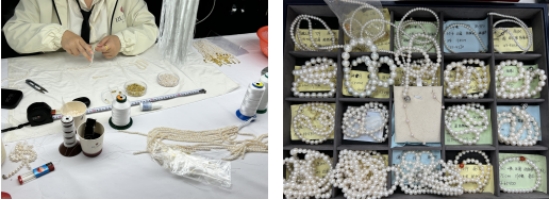 随后,团队探访了珍珠的梦幻王国——华东国际珠宝城,这里是全球最大的淡水珍珠市场。琳琅满目的珍珠饰品摆满各个店铺的柜台,款式多样,设计精美,从简约时尚到华丽典雅,满足了不同消费者的审美需求。