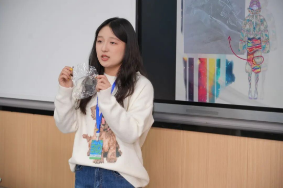 在答辩教室内,紧张而有序的氛围扑面而来。选手们从容自信地展示各自作品,“冰川消融”“古蜀幻裳”“无障碍导盲背心”等主题作品令人眼前一亮——有的将环保理念融入设计细节,有的以传统文化为灵感溯源,还有的聚焦科技功能探索,每一件作品都承载着青年设计师对时尚、生活与社会议题的思考。评委团则围绕作品的完整性、设计表现、创新创意等维度展开细致点评,为选手们提供专业指导。