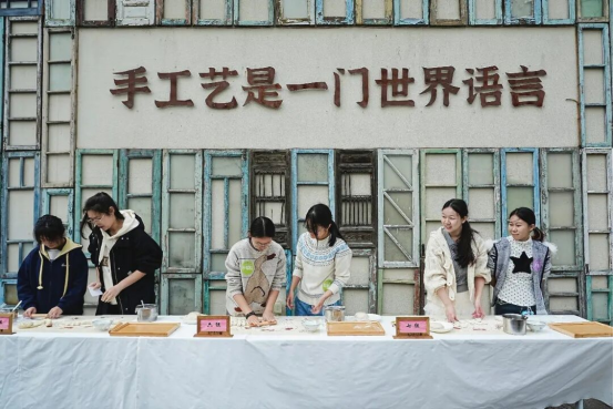 编织暖意未散,“百味匠心 —— 百丈非遗面点匠心赛” 为现场增添烟火温情。乡野厨房内,多所高校的师生们同村民同台竞技,参与红曲包、年糕、南圆北饺等多个组别的比拼,在趣味包法与多元馅料的碰撞中,展开馅皇与饺皇的赛道之争。中午的冬至水饺宴上,中外学子与村民围坐共享美食,大锅煮水饺汤圆,南北风味融合,尽显冬至团圆的文化内涵,这场跨越国界与校界的美食盛宴让温情在舌尖传递。