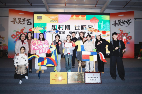 近日,“趣乡博,过暖冬 —— 文艺赋美,编织百丈幸福年” 百丈冬至民俗文化节在传梭博物馆温情启幕。浙江理工大学科艺学院GONG・TIMES 共世时尚设计工作室的同学们在龚剑超老师的带领下受邀参与本次活动,与浙大城市学院国际学生、浙江交通职业技术学院学子、郑芬兰等 5 位非遗传承人代表、百丈镇村民齐聚一堂,以冬至民俗为媒、编织技艺为桥,为上虞非遗传承与国际交流探索新路径,更在暖冬氛围中谱写中外文化交融新篇章。