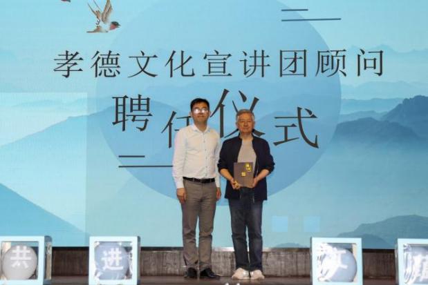 为加强孝德文化传承与弘扬,浙江理工大学科技与艺术学院组建孝德文化宣讲团。由方水明为上虞区孝德文化研究会会长陈秋章颁发顾问聘书。随后,陈秋章为孝德文化宣讲团授旗并赠书。