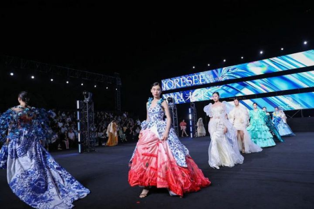 “虞”字,作为上虞的象征,承载着深厚的文化底蕴和历史积淀。在“虞”见未来的主题中,设计师们致力于将这份传统精神与现代青春活力相结合,精心设计168套服装,分为“尚”美之风、“虞”佳山水、“绽”放异彩、“青”青子衿、“春”木葳蕤等五个系列,并在表演中巧妙融入了崧厦伞这一地方时尚产业元素,承载了年轻设计师们对上虞建设“青春之城”的愿景。旨在展示上虞底蕴深厚、青春正茂、创新澎湃、充满张力的“青春之城”形象,立体展示出青春力量与时尚之城的活力风采。
