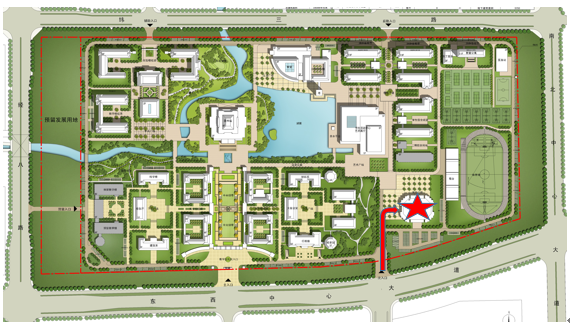 校内路线示意图:(自驾车请从东门进入校园,进门后右前方50米就是招聘会举办地)