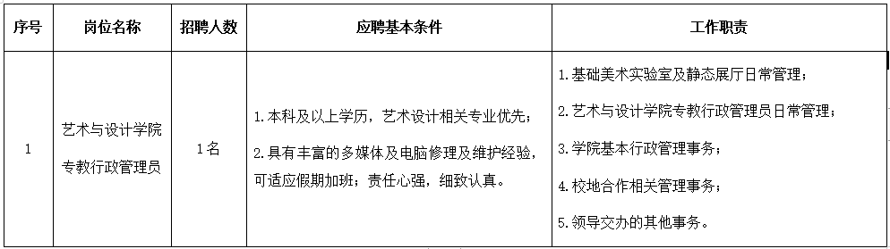 因工作需要,浙江理工大学科技与艺术学院面向校内外公开招聘派遣性质工作人员1名,特此公告如下: