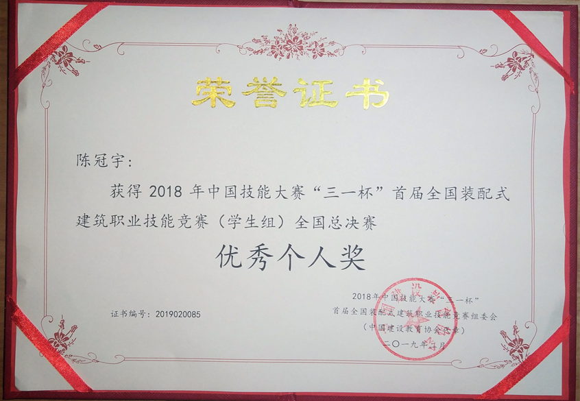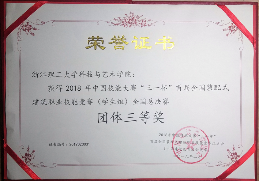 2019年2月27至28日,在中国技能大赛“三一杯”首届全国装配式建筑职业技能竞赛(学生组)全国总决赛中,我院代表队荣获团体三等奖及个人优秀奖,这是我院首次在全国大赛中取得名次。