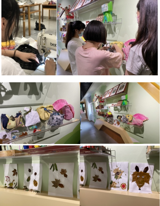 大家返校后,就开始对自己平时作业废弃的残余布料进行收集,经过几天的设计和努力,一系列环保DIY手工品闪亮登场。废旧布料改造的精致包包,碎布头缝制的发卡发箍,扎染布料做成的百花扇、落叶做成的树叶画等等,真是赏心悦目。随后,团队成员带着一些具有代表性的DIY作品,再次赴盖北镇镇东村垃圾宣教中心,他们把自己制作的环保手工品小心翼翼地放在了宣教中心的展台上,希望通过自己的力量给更多的人传递低碳环保理念。双碳是一个大工程,每个人都是参与者,团队成员继续行走在低碳环保的路上。