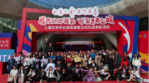 4月22日,由杭州湾上虞经济技术开发区和共青团上虞区委员会主办的“展现缤纷‘社’彩,‘团’聚青春之城”青年社团展演暨五四先进表彰活动在上虞区城市阳台举办。团市委书记金一鸣,区委副书记许建超,区领导夏永江、周晓国、孙伟琴出席。浙江理工大学科技与艺术学院纪委书记骆惠英,团委书记王朋,团委老师、二级学院辅导员,以及来自9支社团的180余名学生参加。