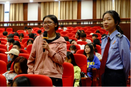 上虞区税务局税务干部杜雨珊、徐佳鑫不仅用通俗易懂的方式向大学生们介绍了税收的概念和作用,解答了一些大学生对税收的疑惑和误解,还详细讲解了大学生如何利用税收政策来支持自己的创业就业,为学生们提供了很多实用的经验和建议。新进干部、团员代表胡沈吉通过视频“在税务局的一天”生动分享由学生向职业人转变之后的经历和心得,传授了备考公务员的经验和技巧,鼓励大学生们一定要坚定目标、坚持梦想。现场还增设了问答互动环节,在座学生们积极参与,踊跃发言。