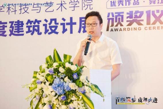 随后,在场领导及嘉宾为9名优秀作品设计师和14名舜江建设集团奖学金同学颁发证书和奖杯。毕业生代表金巧静和舜江奖学金获得者代表钱颖分别作了发言。