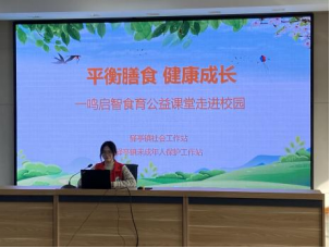 志愿者为孩子们介绍营养均衡的重要性,以及如何通过合理搭配食物来获取所需的营养,讲解了关于膳食纤维、维生素、矿物质等营养素的基本知识,并指导孩子们如何选择适合他们年龄和身体需要的营养物质。