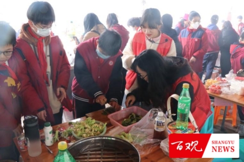 活动上,浙江理工大学科艺学院的学生志愿者手把手协助百官中学初一、初二的同学们,从生火、切菜一步步开始,在劳动过程中体验传统“土灶台” 的浓浓“烟火味”,带来了一堂生动的“农耕课程”。