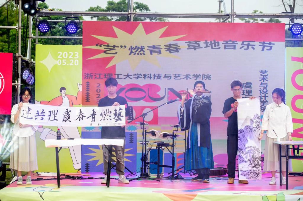 “艺”Young演出:青春开场舞、竹笛独奏、书画表演、二胡独奏、动漫社表演、嘻哈说唱、民谣曲目轮番展现……丰富多彩的音乐元素,青春洋溢的曲目,展现了科艺学子“以艺术之名,为青春代言”的精神风貌、青春风采和用艺术赋能社会美育的社会责任。此次演出为上虞居民带来了洋溢着青春与活力的文化活动,用艺术为文化共富之路注入青春活力。