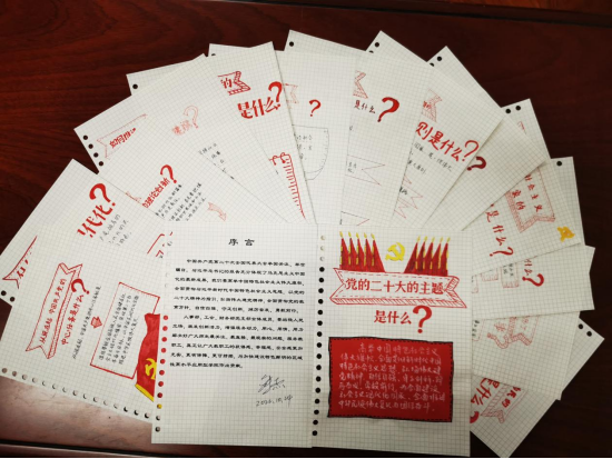 为不断丰富二十大报告的学习渠道,创新学习模式,确保学习成效,支部组织了“绘写红色手帐,献礼二十大”活动。集颜值与内涵,情怀与底蕴并存的“二十大手账”,是对报告学习教育和年轻人创新手账的深度融合,通过作品呈现的方式,将理论学习教育变得“新起来”、“活起来”和“实起来”。