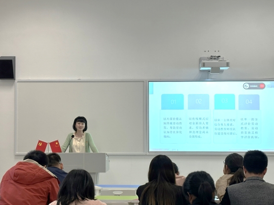 5月11日,王莹作《习近平新时代劳动思想与当下大学生劳动教育》的专题党课。她从认知、精神、理念等层面阐述习近平劳动思想理论的核心内涵,并提出推进科艺学院劳动教育的举措。她指出,要结合办学特色,发挥学校教育场域的主导作用。一是将劳动教育融入思政课程和课程思政中;二是要结合地域、行业、学科等元素,积极开展产教协同育人;三是要推动劳动教育入脑入心,开展持续性的、深层次的实践实习;四是要积极营造劳动教育校园文化,将劳动教育与大学生日常生活管理充分地结合起来;五是要建立多元化评价体系,切实提高劳动教育实效,注重劳动过程育人、劳动结果考量、劳动价值体现相统一。